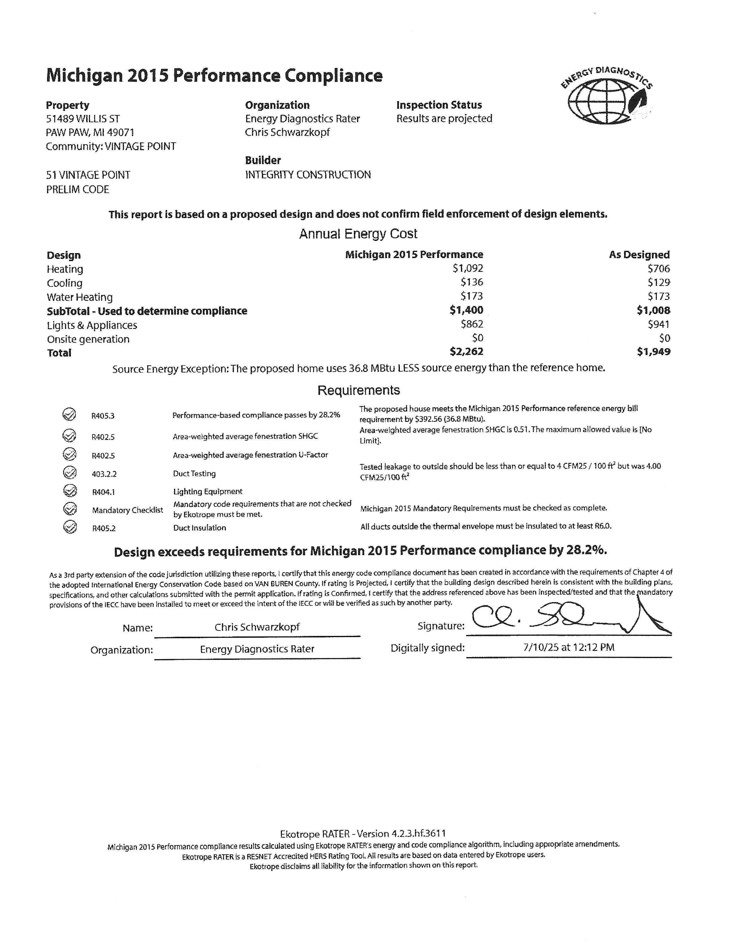 Integrity Construction is proud to say, “We built this home”. Beautiful home is where craftsmanship meets elegance. From the Amish craftsman framing crew from Quincy, MI to the energy efficient windows and insulation, meticulously crafted, every detail is a testament to quality. The kitchen features Amish- constructed and designed kitchen cabinets, a beautiful farmhouse sink with a semi-professional multi-function spray faucet and an undercounter beverage cooler for a bonus. Open concept floor plan accommodates ample room for gatherings, making it perfect for holiday celebrations and family meals. The master suite is designed with comfort and style, featuring a 4'x3.5' tiled shower with a Kohler multifunction shower column and glass doors and walk-in closet. This home features a main floor laundry. Thinking of an electric car, or welder or commercial air compressor? Electric car ready with pre-installed conduit from the garage to the basement. Every home Integrity Construction design and builds starts with the question “what would I want in my home”. Large, covered porch is perfect for enjoying the summer mornings and evenings. The exterior is a mix of textures and materials, with vertical, horizontal and shake style siding, and cedar beams and garage header. Integrity Construction is a custom builder that builds 2-3 homes per year, and the owner, his wife and son are on the jobsite. Integrity Construction is committed to quality and competitive pricing and has created this masterpiece that will exceed your expectations. From the exceptional finishes and highest attention to detail with an eye for perfection. Multiple smart home features like Halo touch screen front door lock, Ecobee Thermostat, Ecobee smart doorbell camera, Smart garage door opener, Juno 6” recessed lights that have 5 switchable color options. Exceeding energy codes by an amazing 28.2%, this home is as efficient as a Yeti Cooler. Close-cell foam insulation, spray cellulose, and a 96% efficient furnace, your annual heating and cooling costs are remarkably low: Per independent company, Energy Diagnostic, will cost a stingy $129 a year for air conditioning and $706 a year to heat this home.
